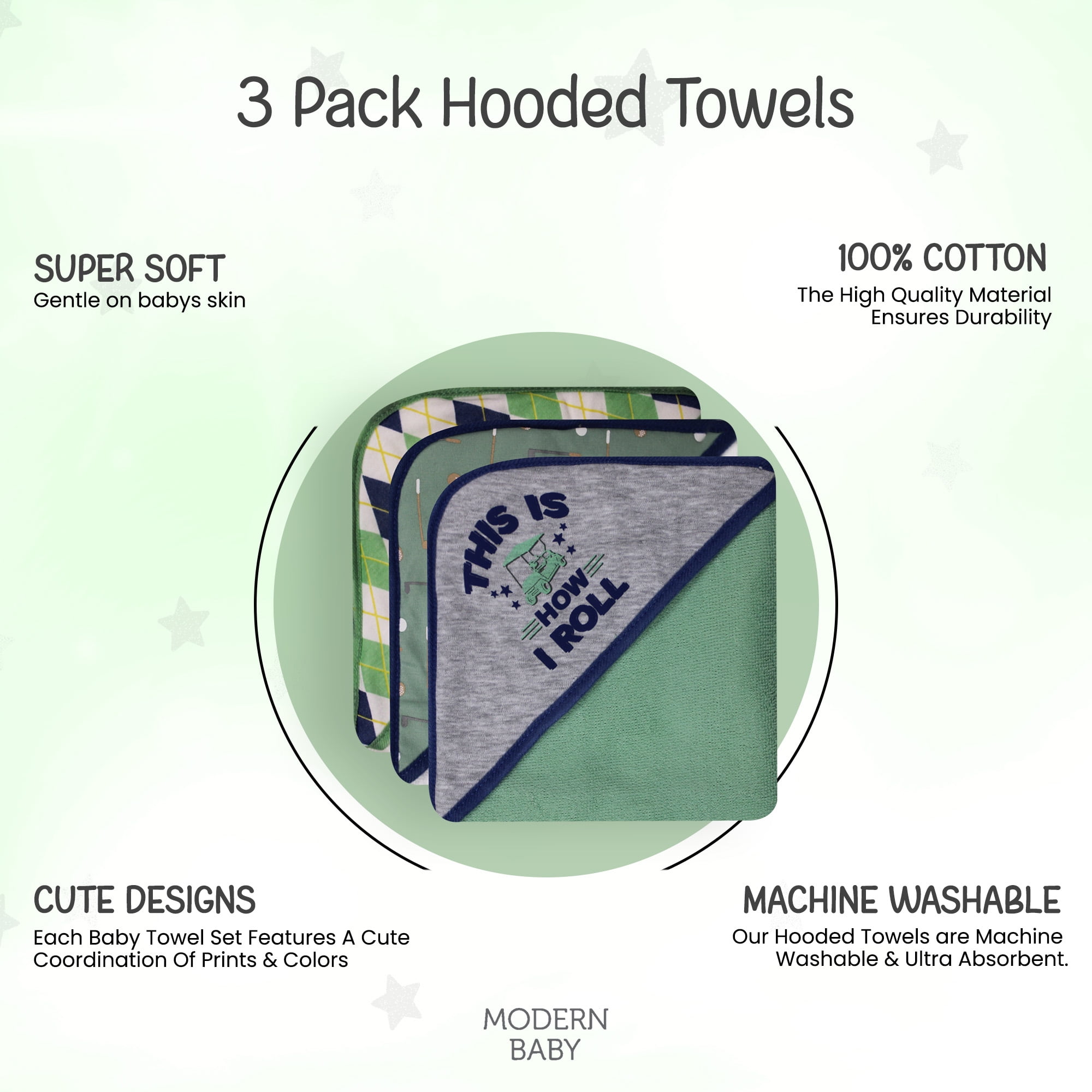 Gerber Cotton Blend Poly Knit Terry Hooded Towels White Gray Green Multi Color 4 Pieces Walmart Com